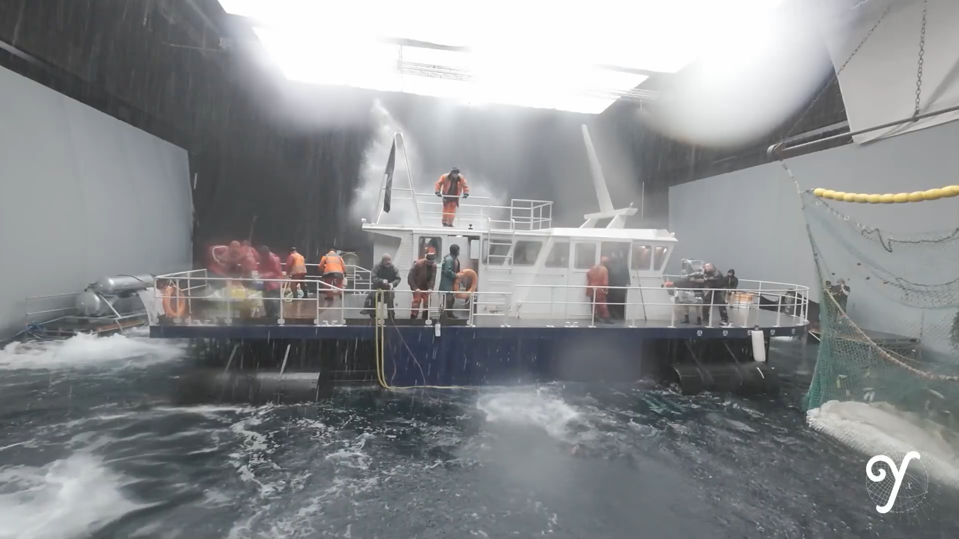 The sequence was born from a strong creative intent led by VFX Supervisor Lesley Robson-Foster: to deliver a deeply immersive and realistic experience of life at sea. Shot in a controlled basin, the goal was not to simulate reality from a distance, but to place the camera directly onboard the boat, fully embedded within the action.