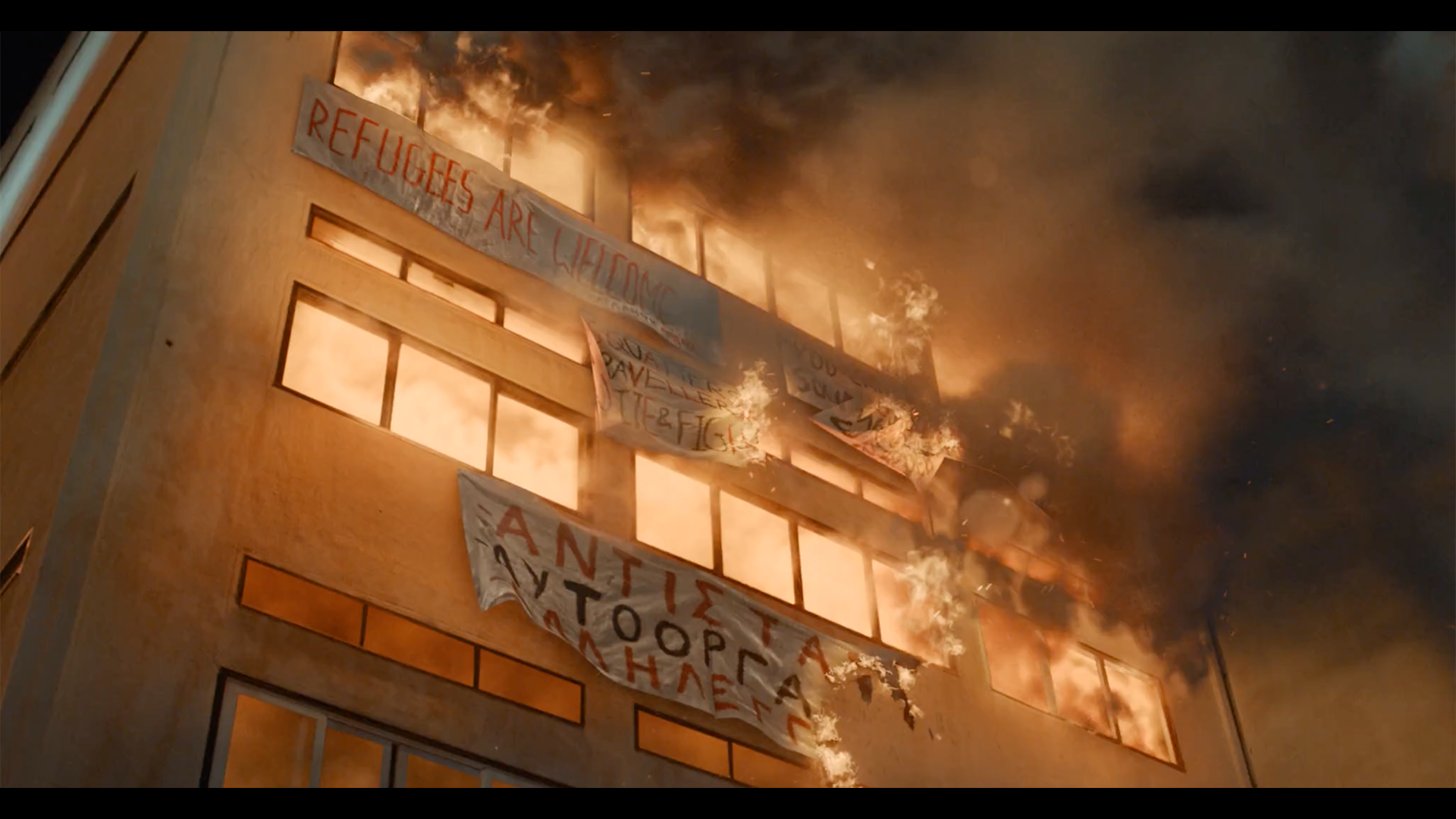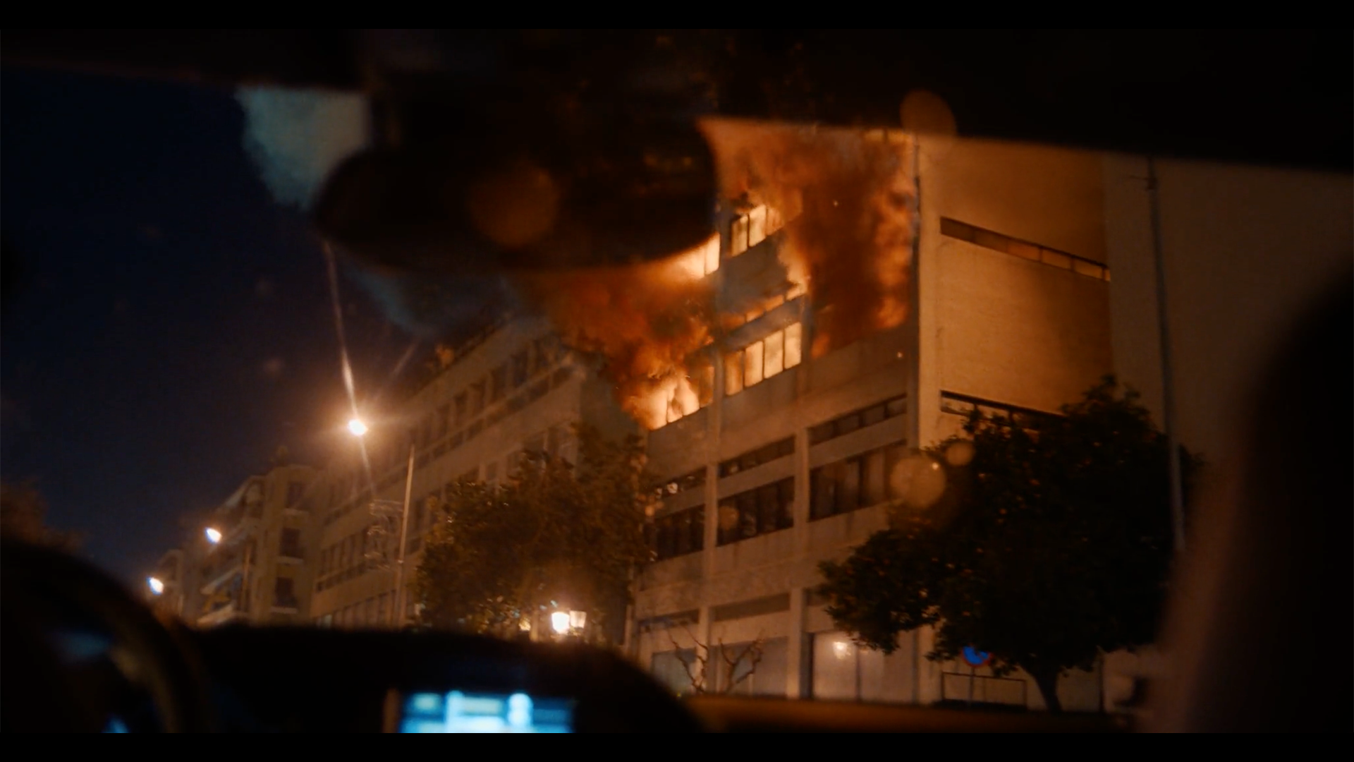 Along with the CG environment extension, THE YARD’s FX team also recreated a massive fire in the building using Houdini and Axiom Solver.