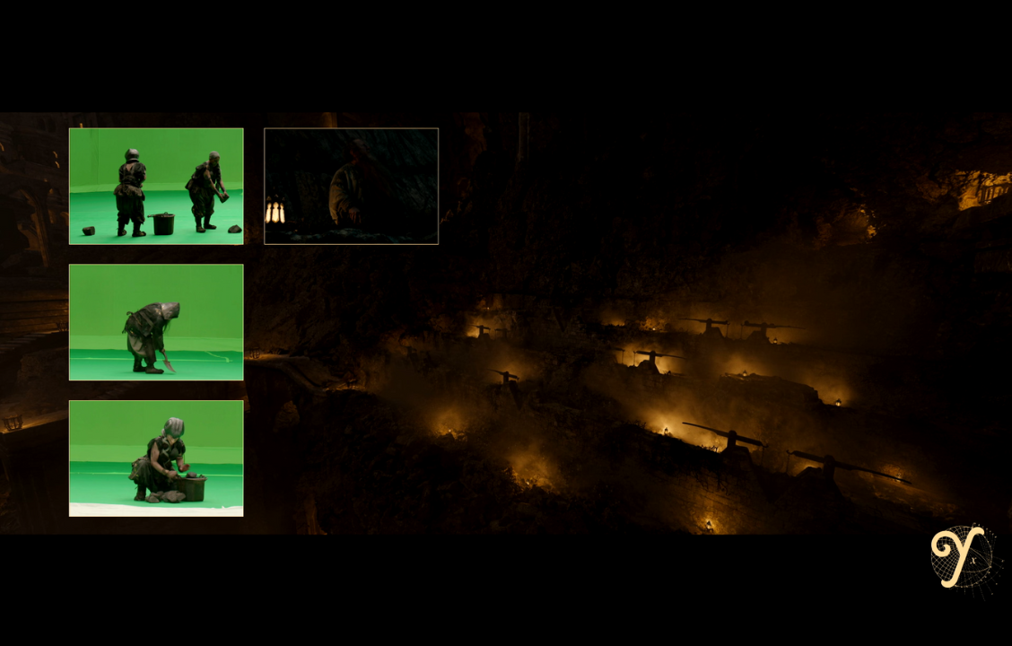 Khazad-dûm is not just a vast underground realm—it’s a living, bustling kingdom where Dwarves are active at every level of the caves and tunnels. To capture this dynamic atmosphere, The Yard was tasked with bringing the environment to life through the creation and animation of digital crowds, illustrating the daily rhythms of Dwarven life: mining, transporting goods, building, and reacting to the natural events around them. This required animating characters in motion across multiple layers of the vast subterranean world, ensuring the presence of Dwarves felt constant and authentic throughout the sprawling environment.