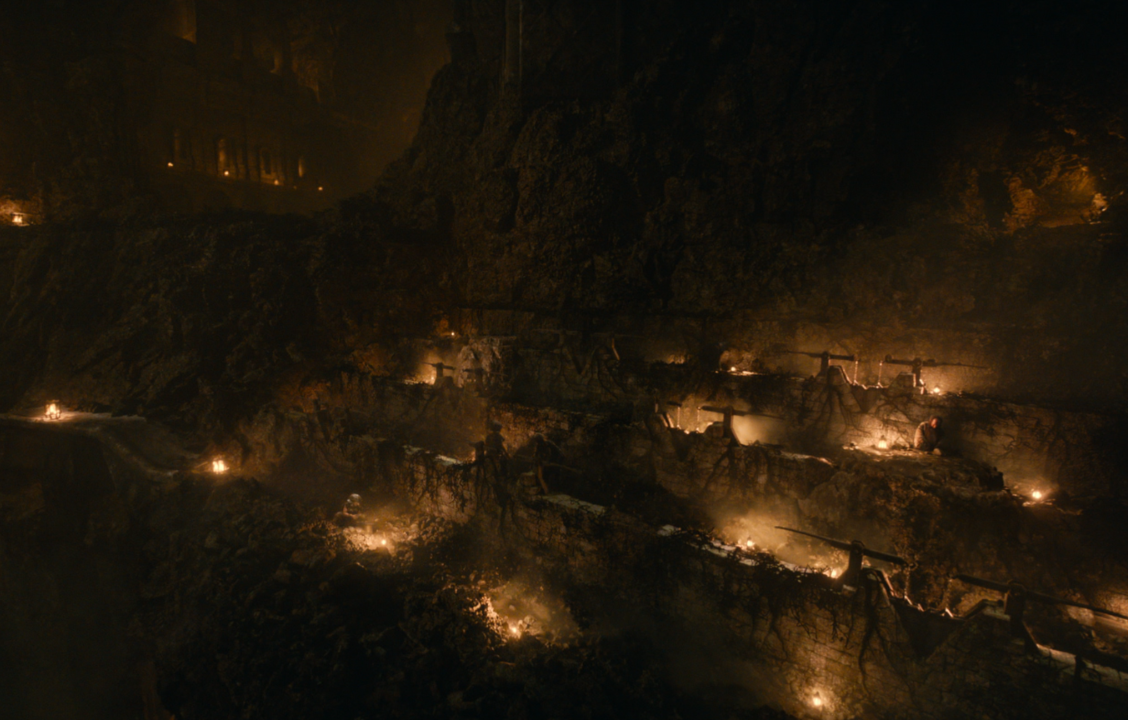 To meet the demands of a series largely shot on sound stages, The Yard developed 19 distinct environments, creating expansive digital set extensions and seamlessly blending CG assets with live-action plates. These environments included towering halls, bridges, cliffside terraces, mining shafts, flowing rivers, and underground reservoirs. The team also meticulously integrated natural elements—from water, rock textures, and vegetation to fog, flame, and reflective surfaces—ensuring interactions with characters and practical sets felt physically grounded.