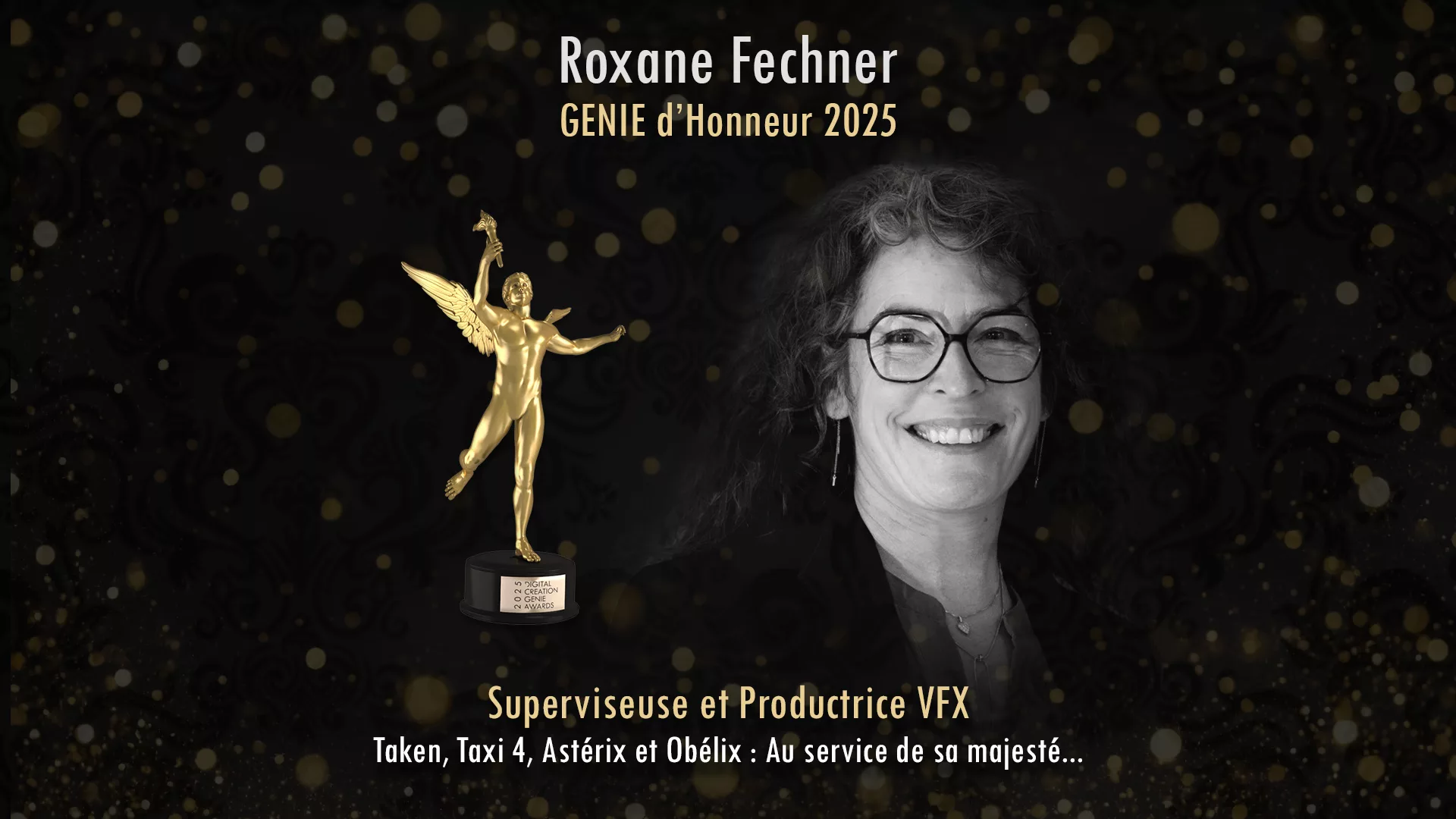 Roxane Fechner was honored with the GENIE d’Honneur for her outstanding career in VFX supervision and production. With over 45 films to her credit, she has championed the role of VFX in French cinema and advocated for gender equality in the industry, setting a new standard of excellence.
