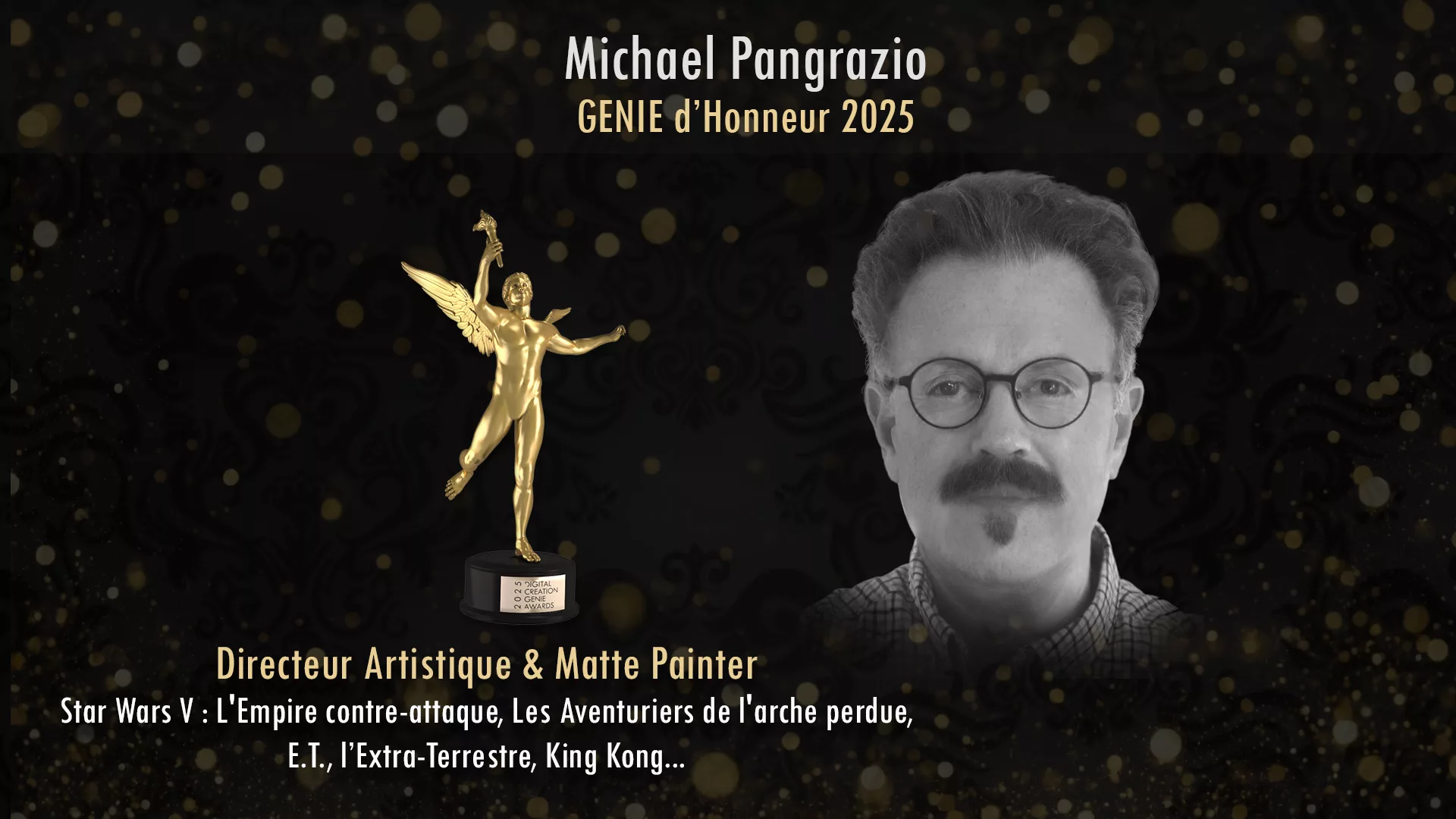 A highlight of the ceremony was the recognition of two industry icons. Michael Pangrazio, a legendary artistic director known for his matte paintings in « Star Wars: The Empire Strikes Back », « Raiders of the Lost Ark », and « E.T. the Extra-Terrestrial », received the GENIE Visionary Award for his lasting contributions to digital creation. A longtime collaborator of Spielberg and Jackson, Pangrazio continues to inspire artists worldwide.
