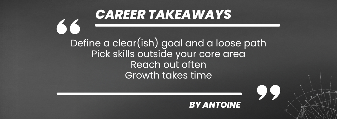 Also, don’t hesitate to reach out to people whether you’re looking for a job or just some guidance. Grow your network as much as possible. And broaden your skill set too. Sometimes, abilities that seem unrelated to your core focus can be the very ones that open the right doors.